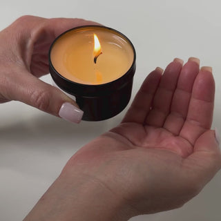 Light the candle and allow a small pool of oil to melt. Then pour a small amount of the warm oil into your hand before gently massaging onto the skin. The oil is designed to feel comfortably warm, never hot.
